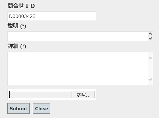 更新する項目を記入した後、Submit ボタンをクリックします。(説明・詳細は必須項目です)