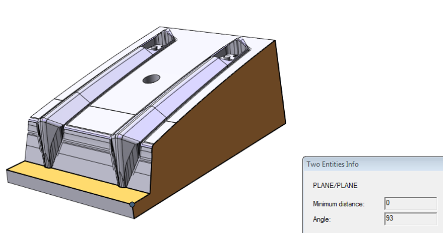 A basic tool is represented by ‘Two Entities’: through the simple selection of two entities, in fact it is possible to get a series of useful information for the design, from the distance between 2 points, up to the possibility of verifying (by selecting two curves, or a curve and a surface), the minimum distance and the possible co-planarity between these entities. In the case of selection of two planes it is possible to measure the draft angle or, in the case of parallel planes, the distance between them, useful, for example for the purposes of a correct assembly.